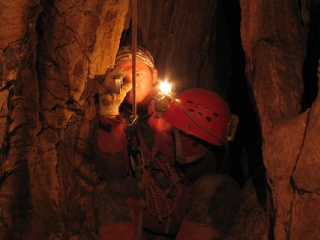 Kolejne dni mijały szybko. Dzięki prawdziwie hiszpańskiej lampie codziennie wychodziliśmy na eksplorację. Ostatecznie, przy odgłosach spitownicy, dotarliśmy na rozdroże na -260. Korytarz rozgałęział się tu na dwa meandry. Pamiętnego 10.08.06 na akcję sprawdzającą lewy meander poszli Kuba i Zbychu. Za nimi ruszyli, kartując ziemię nieznaną, Krzysiek i Konar. Tego dnia miałam bazowy rest, siedziałam więc na górce łączności, filmując widoczki i obserwując Stacha, który biegał po strefie G, namierzając otwory. Nagle dostrzegłam Kubę schodzącego znad G-8. Za nim kuśtykał Zbych. Nawet z odległości 800m wszystko było jasne. Przedwczesny powrót i niewesoła mina Akrobaty mówiła za siebie. Do bazówki dobiegłam przed nimi. Zaraz za mną wpadł nabuzowany Kuba.