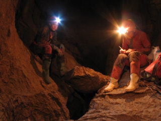 Koniowóz odjechał na wschód a Krzysiek, Kuba i ja dostaliśmy szansę zakończenia dzieła. Na przodek dotarliśmy szybko i ku naszemu zaskoczeniu wiertarka odpaliła za pierwszym razem. Chcąc uwiecznić ten cud, energicznie wyciągnęłam akumulator do kamery. W tym samym momencie zobaczyłam jak spada i znika na zawsze. Na nic zdało się przeszukiwanie meandra i salki z jeziorkiem. Do rzeki też nie dotarliśmy. Po trawersie i 50 metrowej studni zabrakło nam liny. Kartowanie też nam nie poszło. Same nieszczęścia. Do końca wyprawy zostały trzy dni a końca jaskini nie ma...