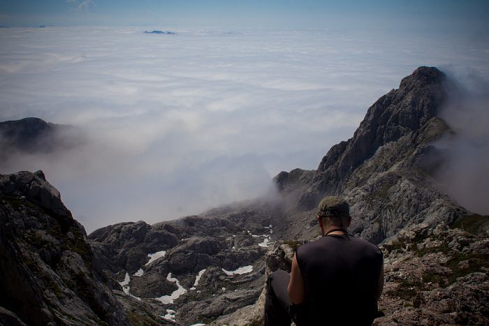 Następnie, w celu rozpoznania terenu, Zbychu zabiera młodych grotołazów na tour de Picos polską częścią eksploracyjną przez strefy G, B, A i C, z wejściem przez grań Los Garapozales na Torre del Alba z widokiem na dolinę z rzeką Cares i Masyw Centralny Picos de Europa.