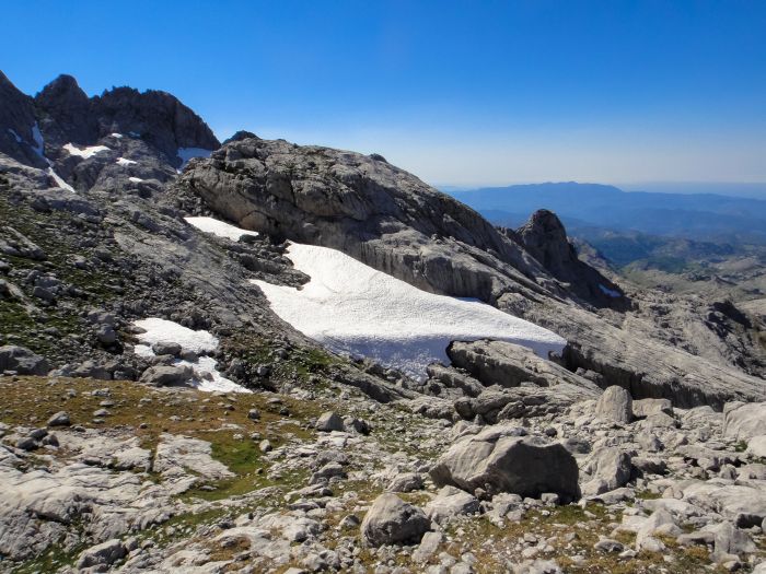 Z kilkudziesięciokilogramowym bagażem na plecach droga z domku Armanda na Barrastrosas trwa 3-4 godziny. Gdyby nie to, że od czasu do czasu warto spojrzeć, co się ma pod nogami od pocztówkowych widoków w zasadzie nie odrywa się po drodze oczu. Mnogość odcieni zieleni coraz gęściej kontrastowo przeplata szarobiały wapień i topniejące od wiosny połacie śniegu. Nieustannie słychać dzwonki. Tutejsze krowy zdają się nie przejmować zbytnio turystami, beztrosko skubiąc trawę, gdzie im się tylko podoba. Pejzaż w sam raz dla miłośników bardziej urozmaiconego, aniżeli płaskie morze, krajobrazu, choć przy dobrej widoczności zobaczyć stąd można i Atlantyk.