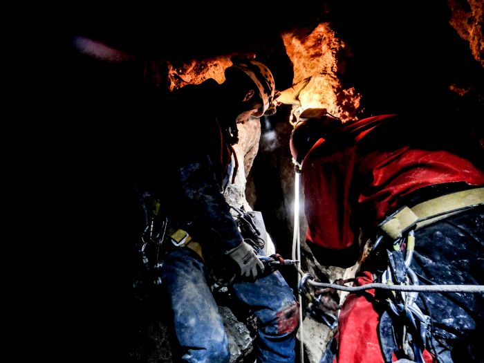 Po akcji, w ramach ćwiczeń, młodzi grotołazi próbują dostać się na dno G8. Z braku sprzętu, który pozostał na froncie, w połowie drogi następuje wycof.