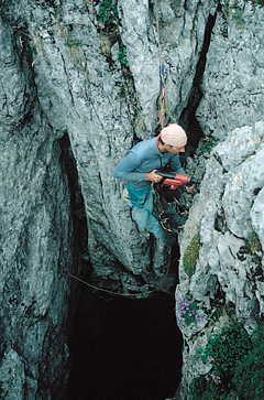 A renewed attempt at exploration was made in Pozu del Porru de los Garapozales (A-3; -432 m). The exploration goal in this cave was to bypass the final hundred-metres shaft. After a traverse above the shaft a possibility of descent appeared. However, despite of using long HSA anchors, we could not rig for a safe descent. Because of the high risk, exploration was abandoned.