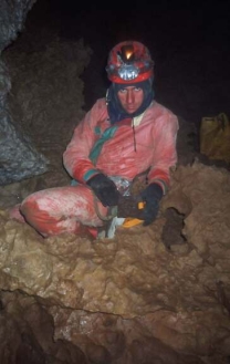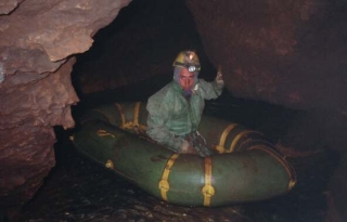 Opady te okazują się pozytywne ponieważ odżywa nasze źródełko. Kolejny dzień 17.08 jest już w miarę pogodny i z Tomkiem idziemy na wcześniejsze kartowanie. W jaskini dotarcie do pontonu idzie nam bardzo sprawnie i szybko przystępujemy do chyba najgorszego zajęcia jakim są pomiary. Ostatni punk pomiarowy w F-17 był jeszcze przed ciągiem wodnym, więc musimy skartować jeszcze zawalisko co zajmuje nam dość trochę czasu, ale w końcu wchodzimy do pontonu i kartujemy rzekę co jak się okazuje nie jest takim prostym zadaniem ( trudno zlokalizować wcześniejszy punkt, ponton ciągle faluje i bardzo trudne jest ustawienie dalmierza w bezruchu no i zimno). Po 6 godzinach walki z przyrządami, pontonem, wodą oraz wodospadem 10m docieramy do połączenia z B-12 i stwierdzamy, że dalej nie damy już rady i postanawiamy wracać.